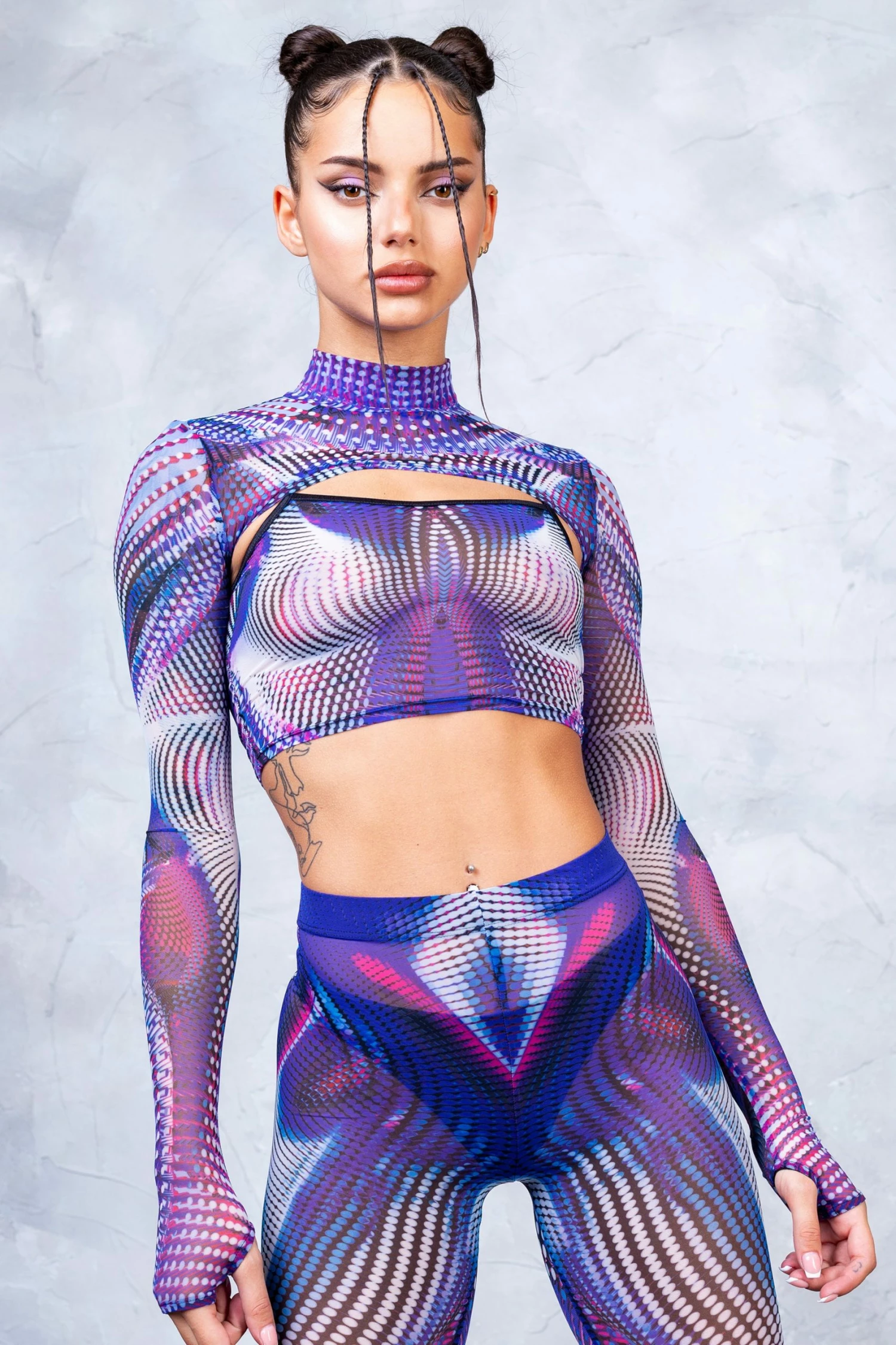 The Fata Morgana 2-Piece Shrug Top is a festie must have. Pair with the matching leggings for a finished trippy lewk.