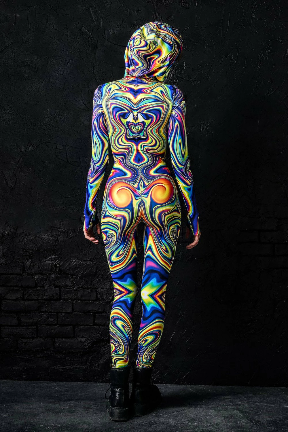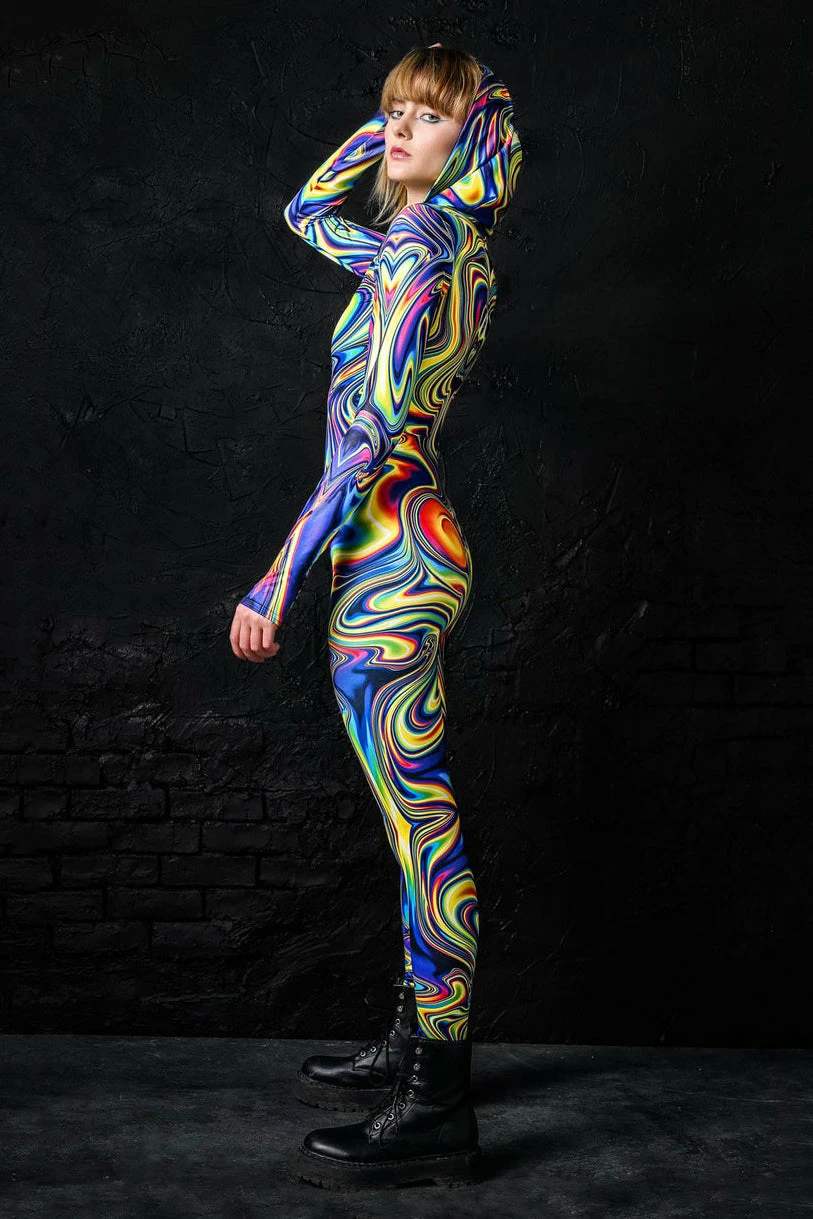 Get rdy to bend their reality cuz this epic bodysuit will make errything melt, babe! This hooded costume is not only super lit, itβs also flattering as hell cuz the material fits like a glove and holdz everything in place. Colors are crisp clear and vibrant, just as in the pics. This fit onesie has a hidden front zip, long sleeves with thumb holes and a secretive inside print. Sorry if you were lookin for somethinβ basic…